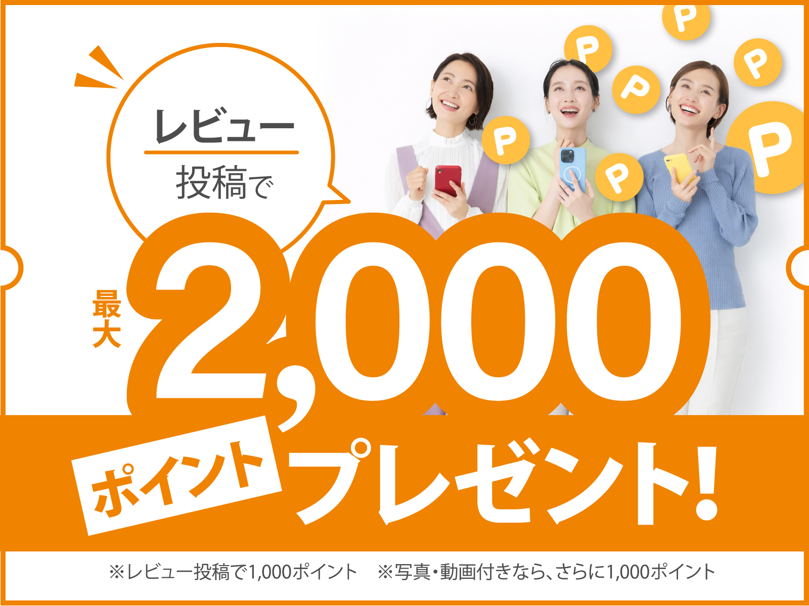 【写真・動画付きのレビュー投稿でさらに1,000円分のポイント、最大2,000円分のポイントを進呈します。】