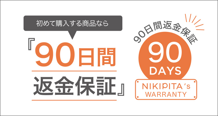 NIKIPITA公式サイトでは、はじめてのお客様に安心して商品をお試しいただくために、90日間の返金保証を設けております。