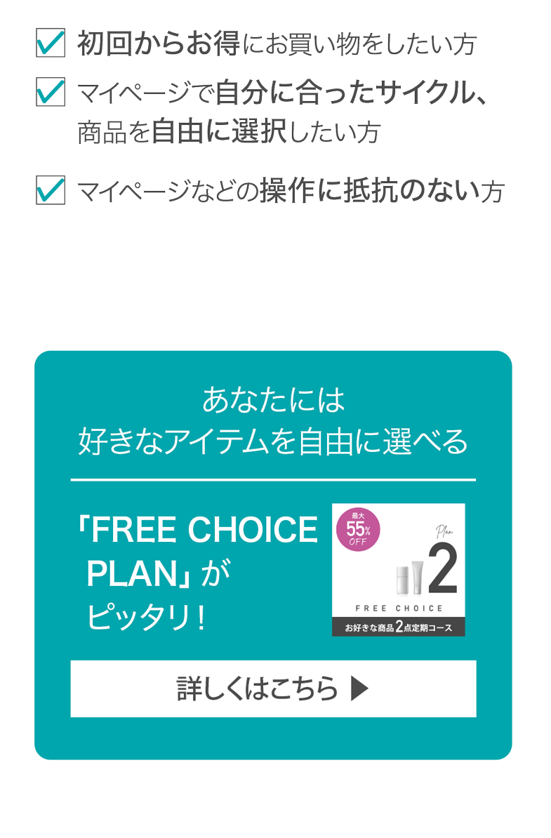 好きなアイテムを自由に選べる定期コース「FREE CHOICE」が大人気!